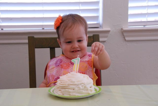After investigating her cake for a few moments Bellamy was not interested in sitting in front of it anymore. As soon as she was out of her seat this is where she headed...
